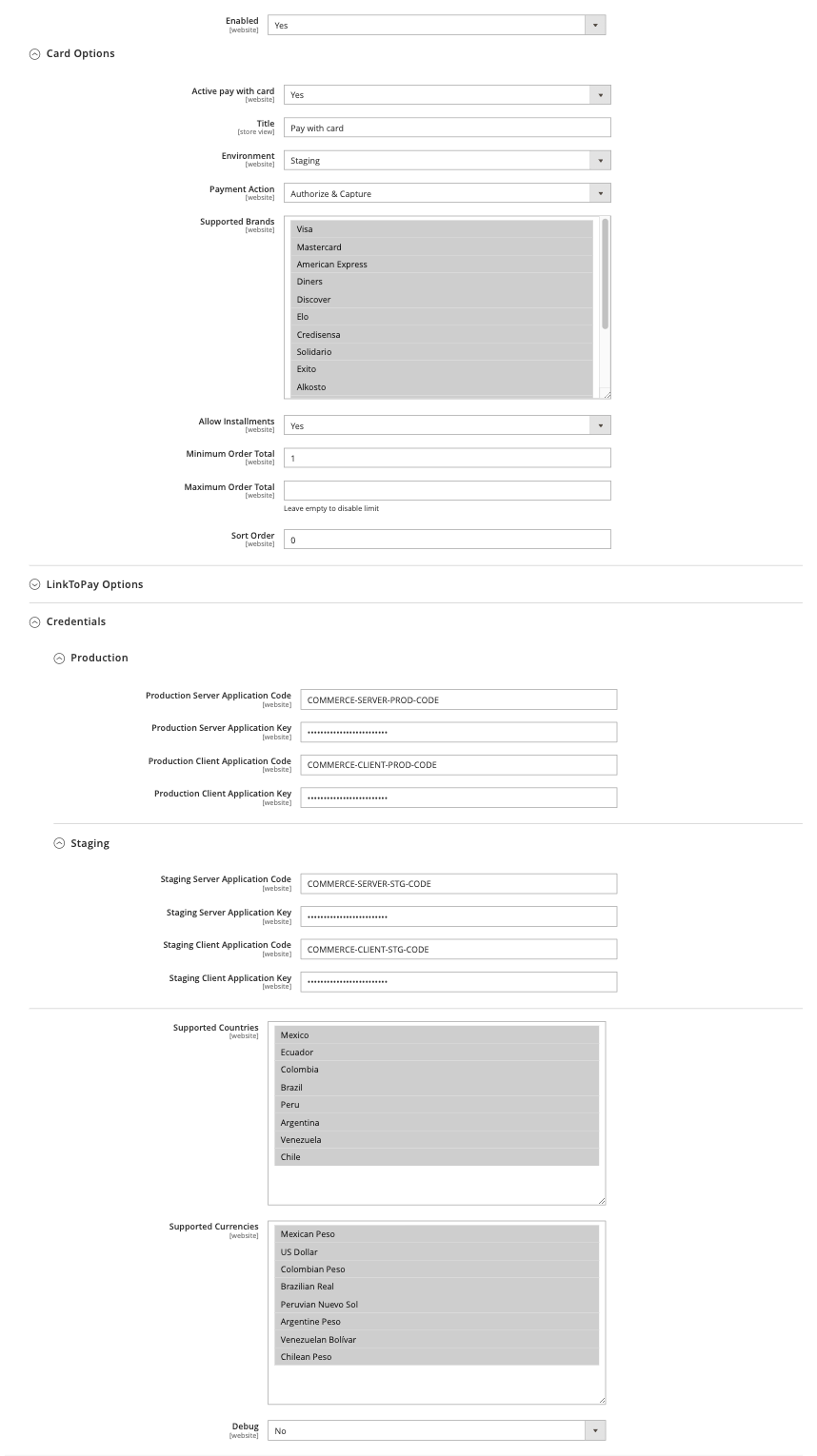 Payment Server Credentials APP_CODE and APP_SECRET_KEY